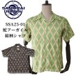 SAMURAI JEANS サムライジーンズ SSA25-01 蛇アーガイル総柄シャツ 業平菱アーガイル柄レーヨン オーガニック綿サテン生地 貝ボタン 日の丸ネーム ワンウォッシュ 半袖シャツ madeinjapan 日本製 [SSA25-01]