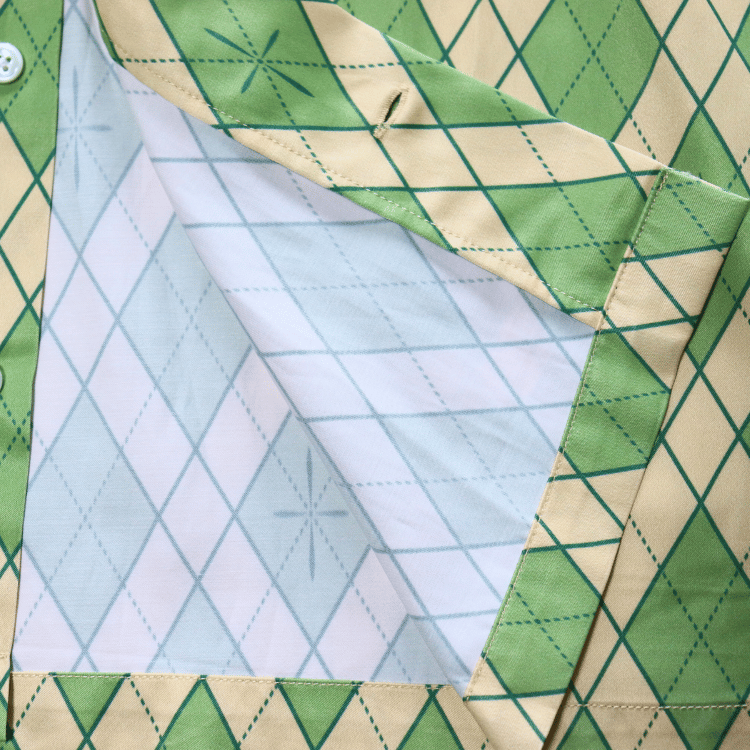 SAMURAI JEANS サムライジーンズ SSA25-01 蛇アーガイル総柄シャツ 業平菱アーガイル柄レーヨン オーガニック綿サテン生地 貝ボタン 日の丸ネーム ワンウォッシュ 半袖シャツ madeinjapan 日本製