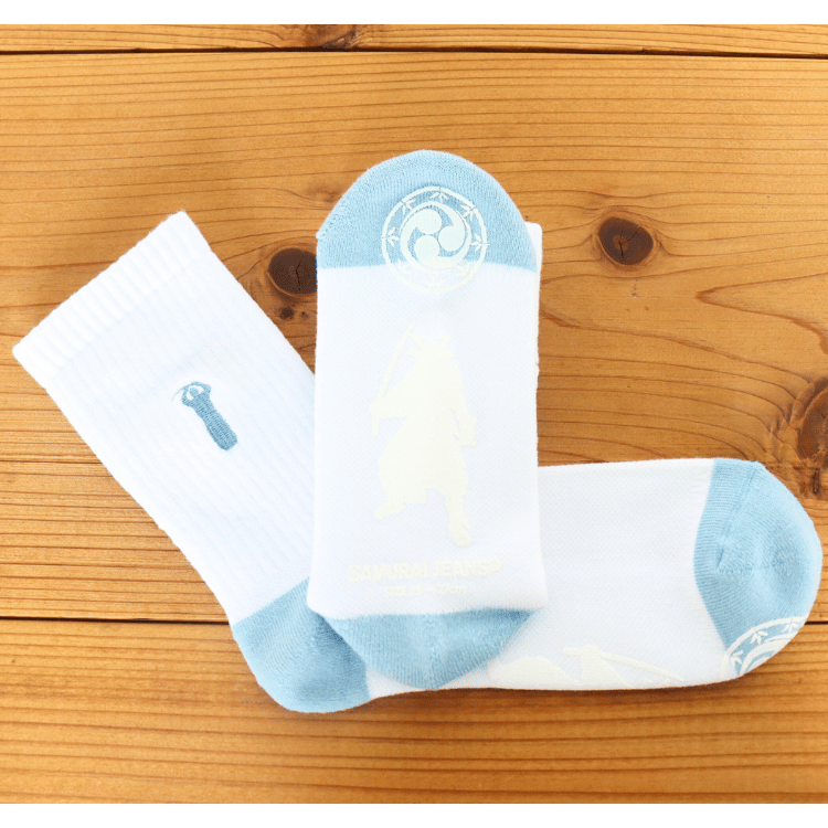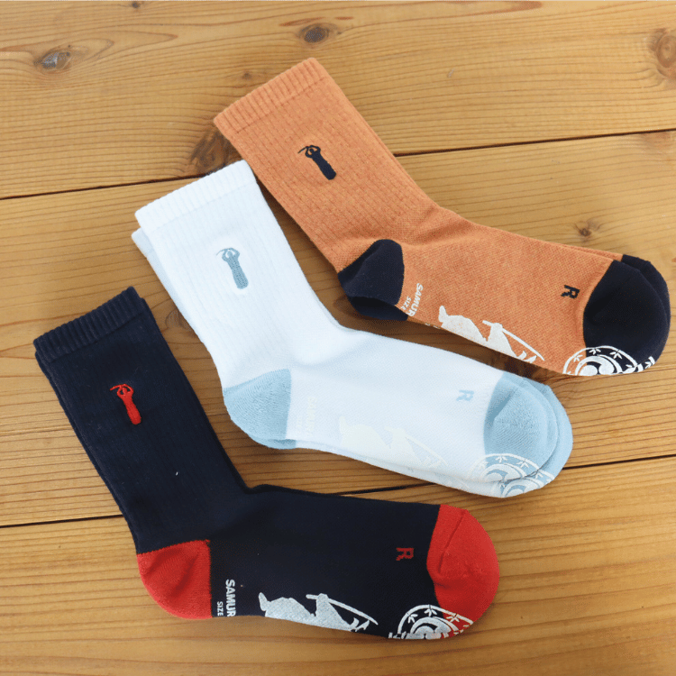 SAMURAI上段刺繍とデザインが入ったロゴ刺繍クルーソックスです。