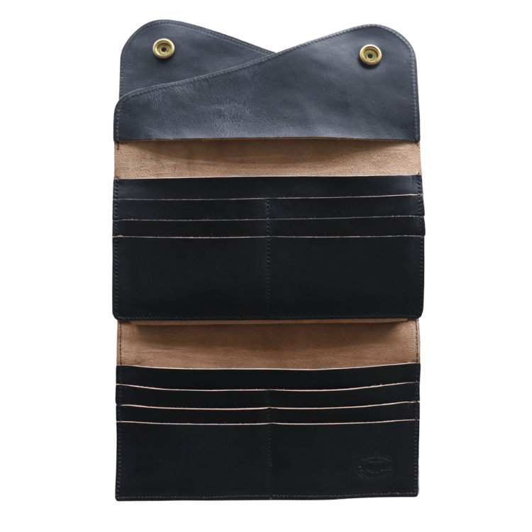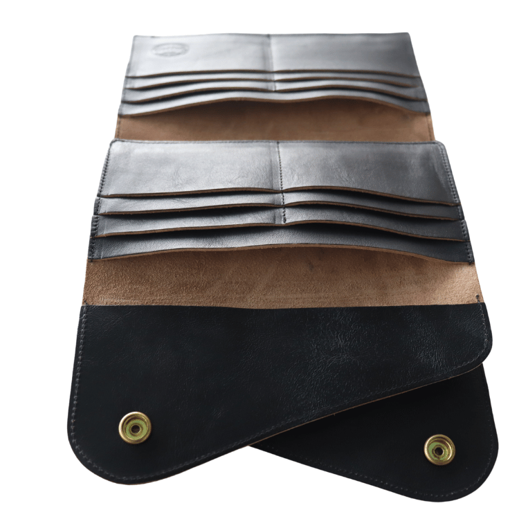 カード入れ12箇所と容量があり背面の小銭入れが特徴的な