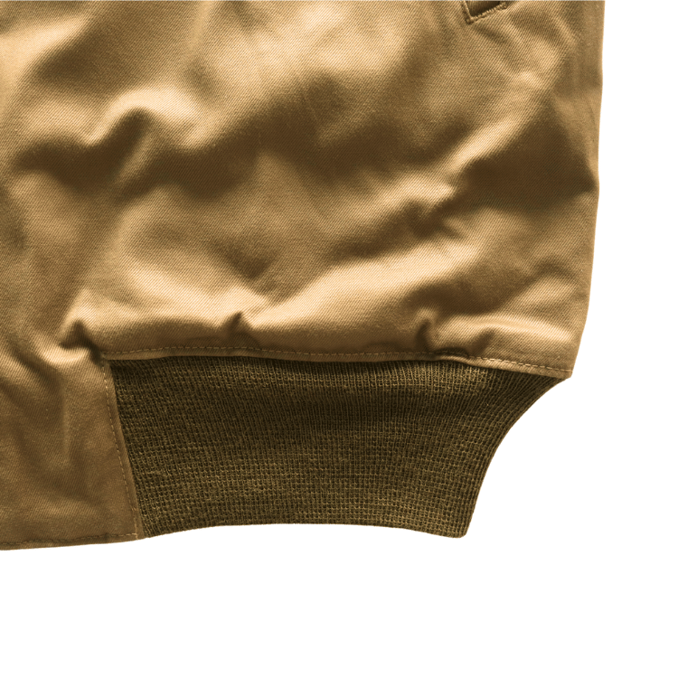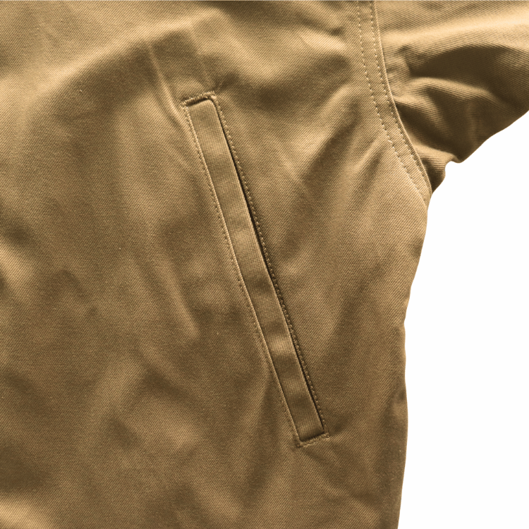 アウターシェルは耐水・耐風加工を施したコットンツイル。