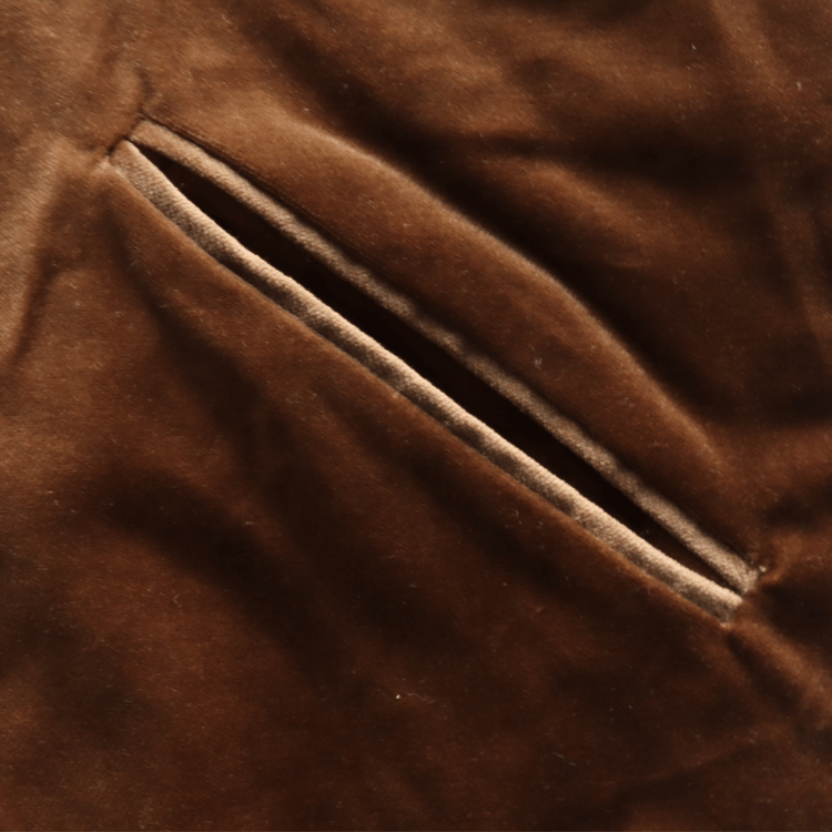 ヴィンテージでも珍しいブラウンの別珍生地で仕立てられた一着。