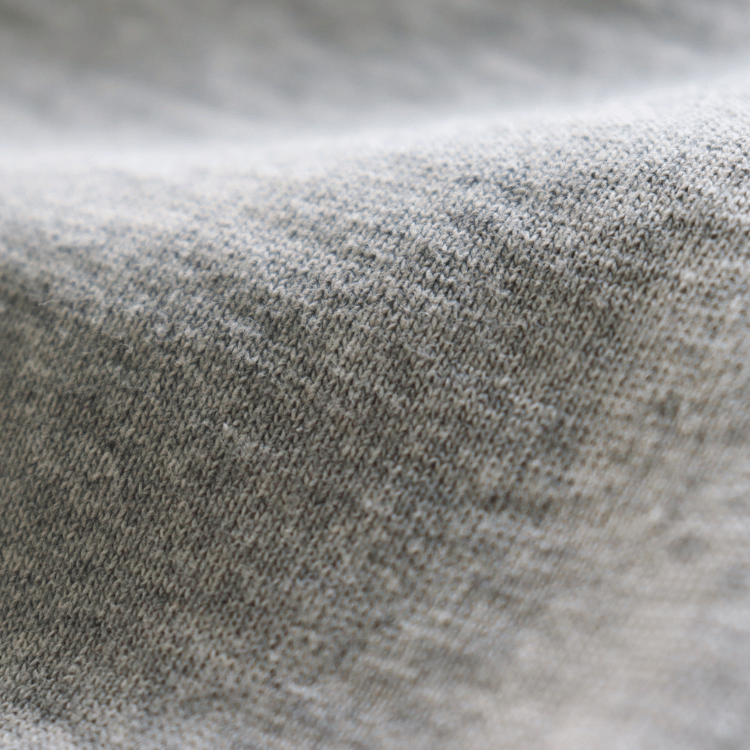 吊裏毛素材。旧式吊編機の超低速度により限界最高密度で編み上げた