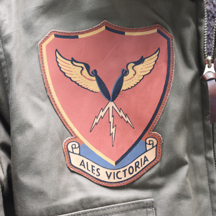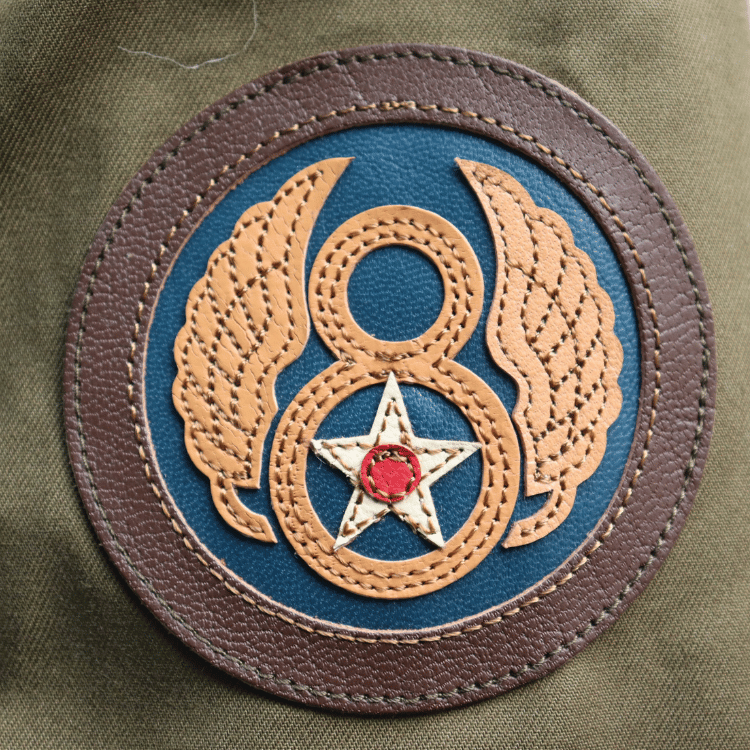 左肩に8th AFのレザークラフトパッチ