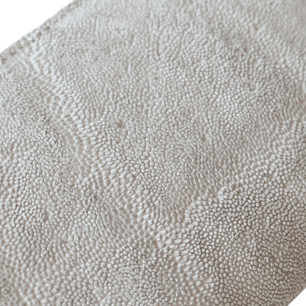 クラストとは、ゾウ革を鞣した後の染色前の下地のことで染色、加脂などの仕上げ加工がされていない状態。