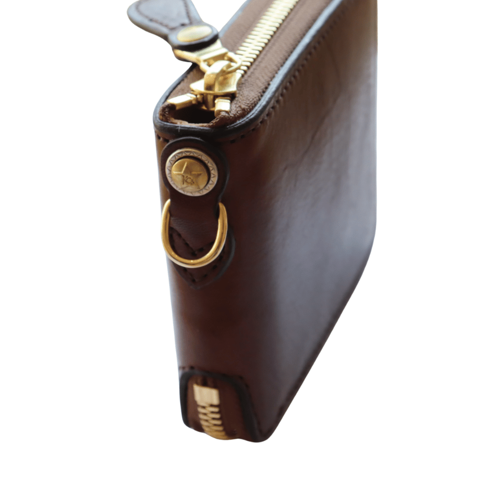 お財布の外側にDカンをつけており、ブランドオリジナルのスタースタッズを装飾しています。