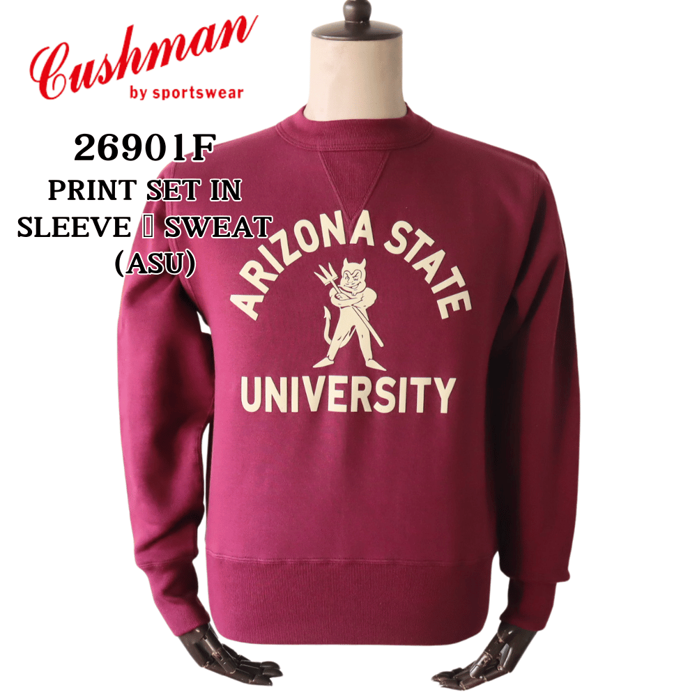 CUSHMAN クッシュマン 26901F PRINT SET IN SLEEVE SWEAT ASU プリントセットインスリーブスウェット [26901F]