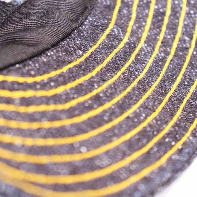ブリムにステッチ、庇裏はチェーンステッチが入ります。