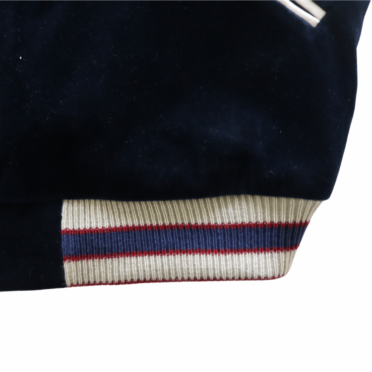 2色の別珍生地を使い、身頃と袖下で2トーンに切り替えた