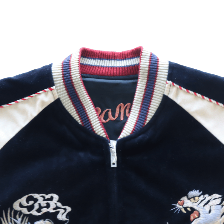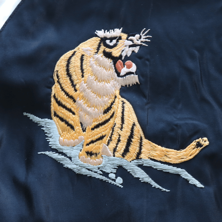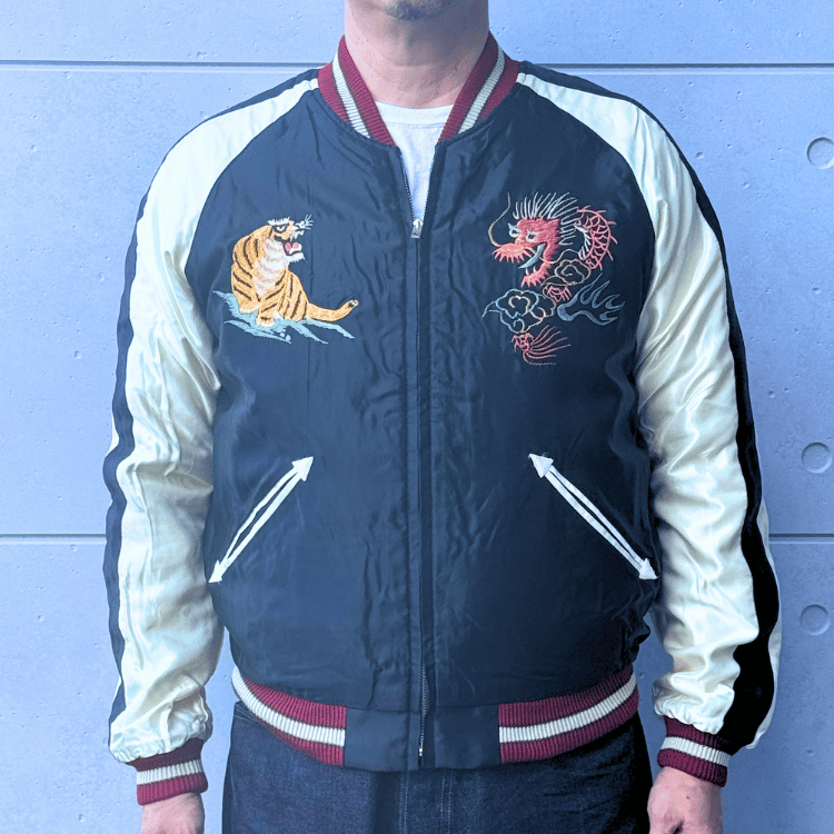 背中には鷲とスカジャンの三大モチーフが揃った贅沢な一着。