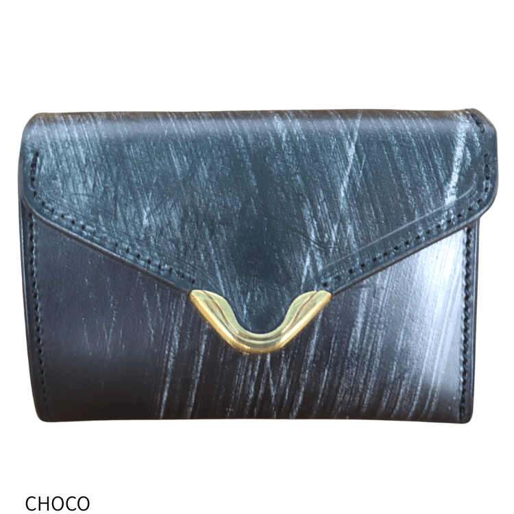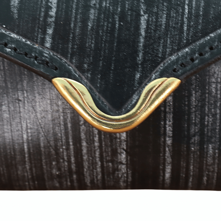アイコニックな真鍮金具がデザインアクセントのコンパクトウォレット。