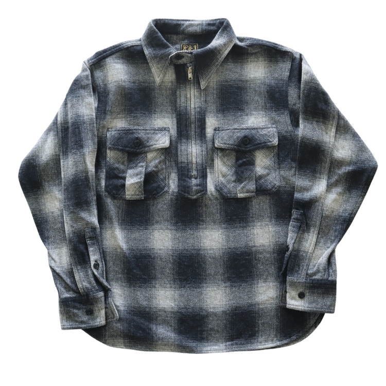 COTTON TWEED CHECK HALF ZIP WORK SHIRTS