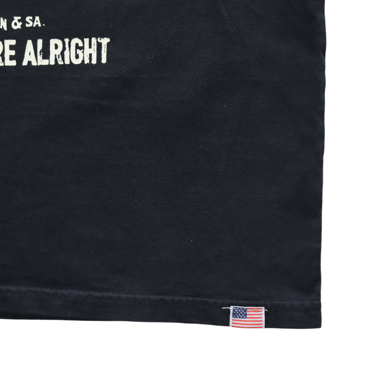 しっかりとした首周りのつくりや裾に配されたUSコットンボディーを示す星条旗タグなど、